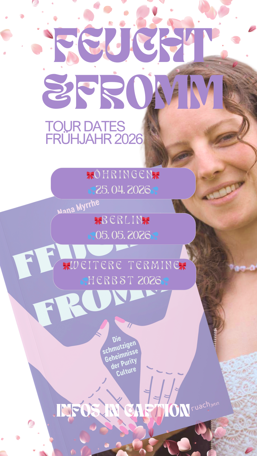Hier findest du Infos zu meinen aktuellen Leseungsterminen, Workshops, Vorträgen, Live-Podcasts oder FCK PURITY Community Treffen. Details folgen hier & in meinem Newsletter.